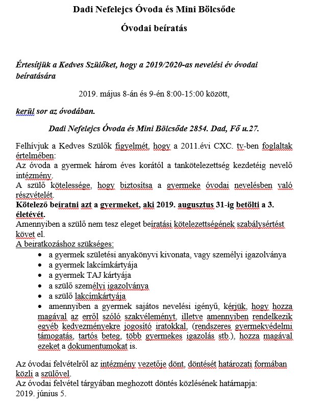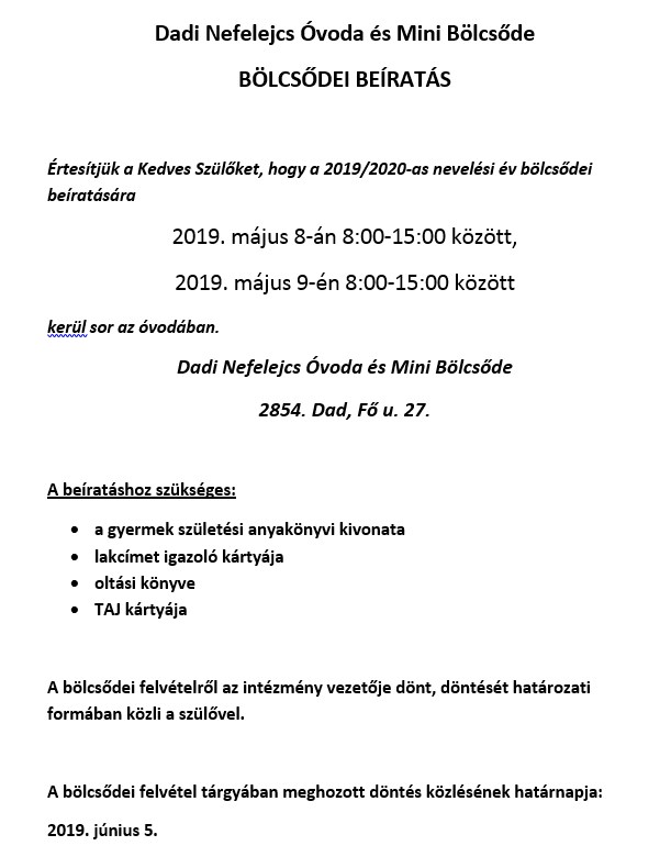 Dad Község Önkormányzatának honlapja: www.dad.hu - 2019. május 06.